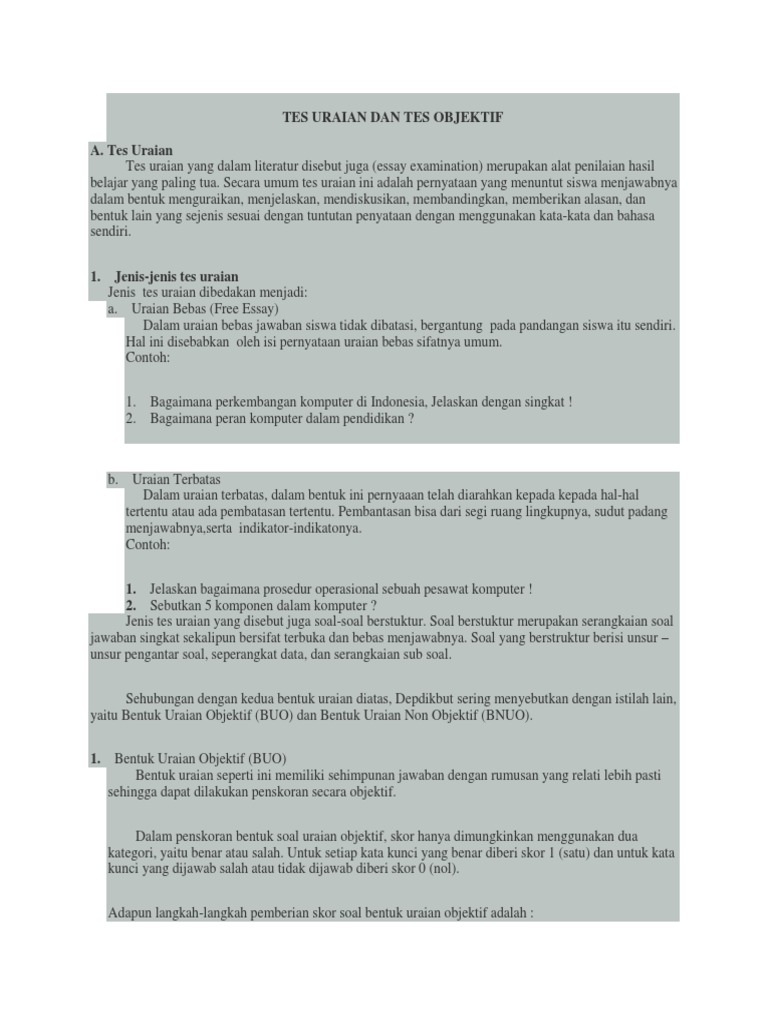 Contoh Soal Uraian Objektif Bahasa Indonesia / Http File Upi Edu Direktori Fip Jur Psikologi Pend Dan Bimbingan 195911301987031 Yaya Sunarya Bahan Evaluasi Asesmen Tes Uraian Pdf : Reliabilitas tes objektif jika alat ukur tersebut digunakan untuk melakukan pengukuran secara berulang kali maka.