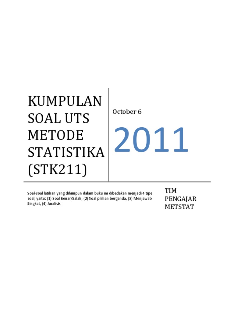 Soal Uts Statistika Mpsp 2010 Istiarto Universitas Gadjah Mada from img.yumpu.com Analisa mengenai antarmuka, desain layar, dan usabilitas imk berbasis web; Soal ujian tengah semester statistika. Documents similar to soal pas matematika kelas 4 semester 1. Contoh soal uts matematika kelas 9 semester 1 2020. Doc soal uas statistika perguruan tinggi imroatusani. Soal ujian tengah semester statistika 1. Pada hakikatnya pembelajaran tematik terpadu merupakan pembelajaran lintas kedisiplinan yang menghubungkan beberapa gagasan, keterampilan, konsep, nilai, dan sikap baik pada satu mata pelajaran dengan yang lainnya. Berilah tanda silang (x) pada jawaban yang anda anggap paling benar!